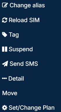 Various actions can be executed on single or multiple SIMs within the SIMs Table. Additionally, actions specific to a single SIM can be accessed from its dedicated SIM info Page. To engage these actions, click on the Menu options button situated on the right side of the SIM row.